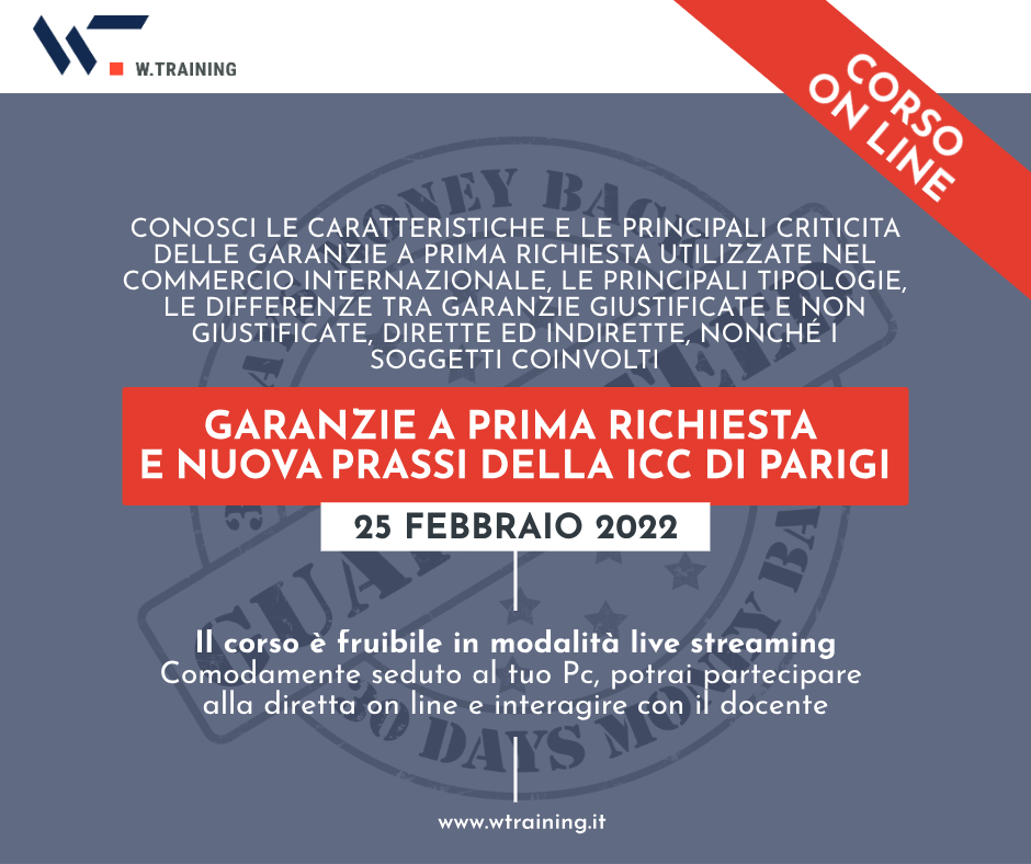Corso on line per conoscere le caratteristiche e le principali criticità delle Garanzie a prima richiesta utilizzate nel commercio internazionale (bonds e Standby), le principali tipologie, le differenze tra garanzie giustificate e non giustificate, dirette ed indirette, nonché i soggetti coinvolti