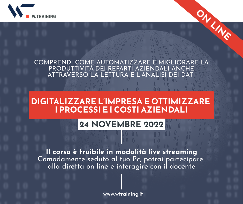 Corso on line per capire come automatizzare e migliorare la produttività dei reparti aziendali anche attraverso la lettura e l’analisi dei dati