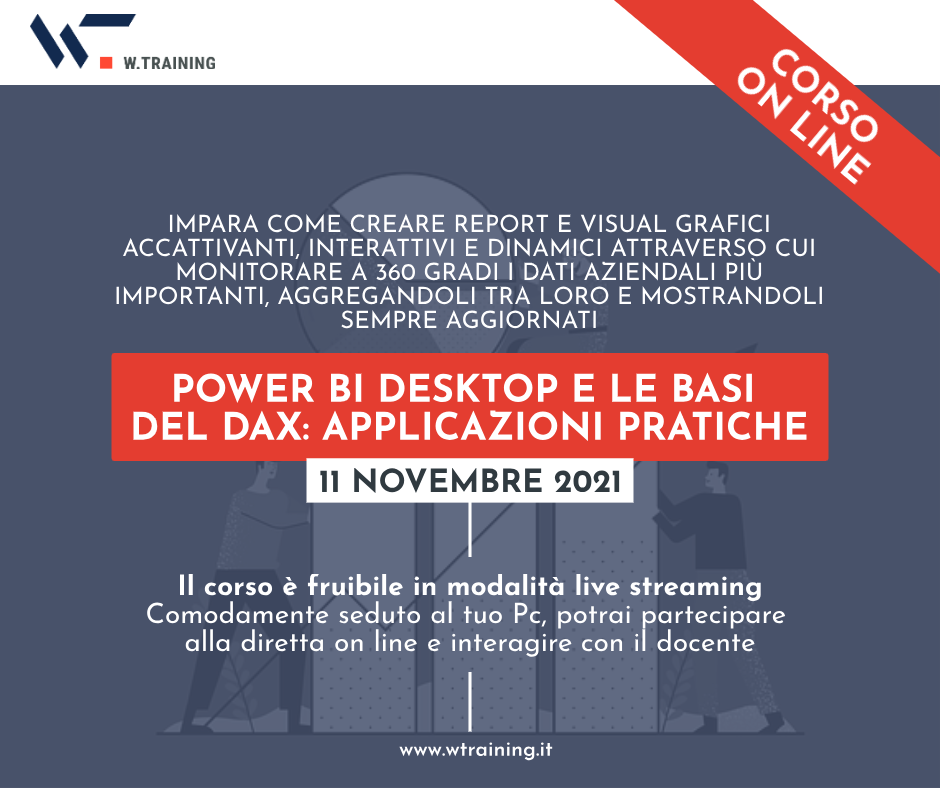 Corso on line per imparare come creare report e visual grafici accattivanti, interattivi e dinamici attraverso cui monitorare a 360 gradi i dati aziendali più importanti, aggregandoli tra loro e mostrandoli sempre aggiornati