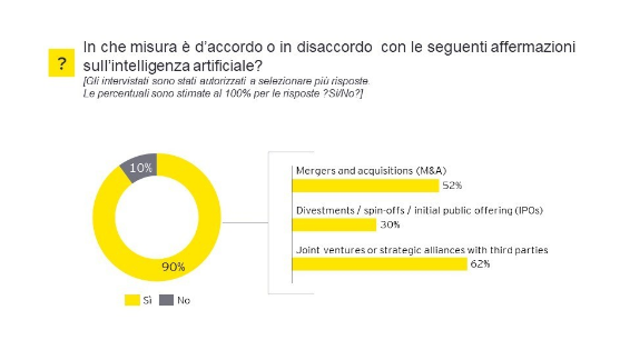 - Il 62% degli amministratori delegati italiani considera joint venture e alleanze con partner strategici uno strumento chiave per la crescita