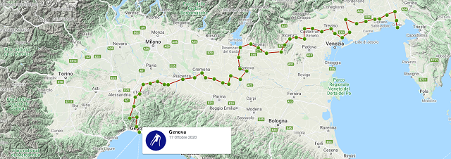 Durante il lungo percorso – che noi di W.Training abbiamo seguito e supportato -, Andrea ha toccato 47 tappe (nella cartina qui sotto), dopo essere partito da Grado lo scorso 21 agosto, insieme alle sue inseparabili stampelle innovative in carbonio studiate appositamente da lui stesso per migliorare la vita e le performance, anche sportive, di chi necessita di questo ausilio.