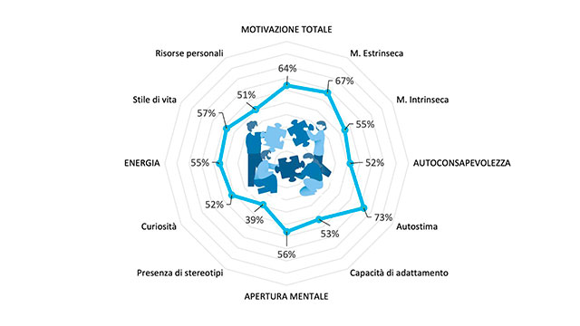 Se un gruppo di persone fanno il nostro test, gli output saranno tre: un output categoriale che ci dirà quali sono i profili professionali di ciascuna di quelle persone, un’analisi dimensionale di tutte le persone e poi un’analisi dimensionale del gruppo all’interno del quale quelle persone lavorano.