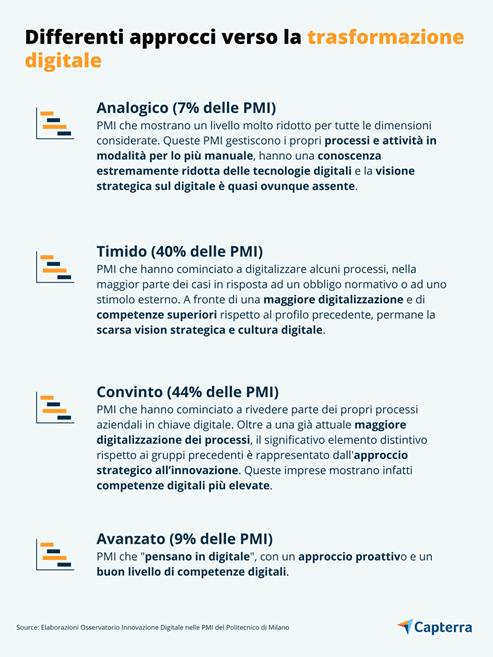 Grazie ai dati raccolti da Capterra, l’Osservatorio Innovazione Digitale nelle PMI del Politecnico di Milano ha stabilito un indice di maturità digitale delle PMI: