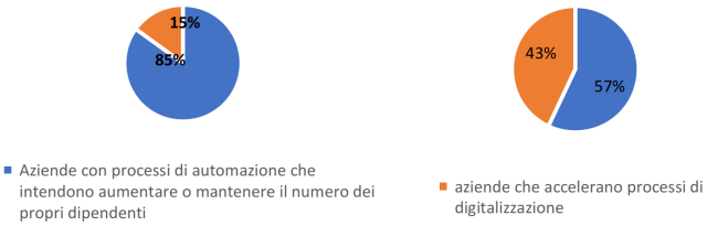 - Automazione fa rima con occupazione: l’85% delle aziende in Italia che hanno in corso un processo di automazione intende aumentare o mantenere la propria forza lavoro