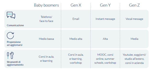 Per rendere ancora più efficace una strategia di employer branding e talent attraction occorre anche tener conto che esistono sostanziali differenze di dieta mediatica fra le generazioni. Mentre i Baby Boomers, per esempio, sono legati a comunicazioni più tradizionali (come il classico face-to-face), i candidati più giovani tendono a preferire forme di comunicazione online e dirette, dalle chat ai messaggi vocali, che richiedono quindi un approccio personalizzato e su misura.